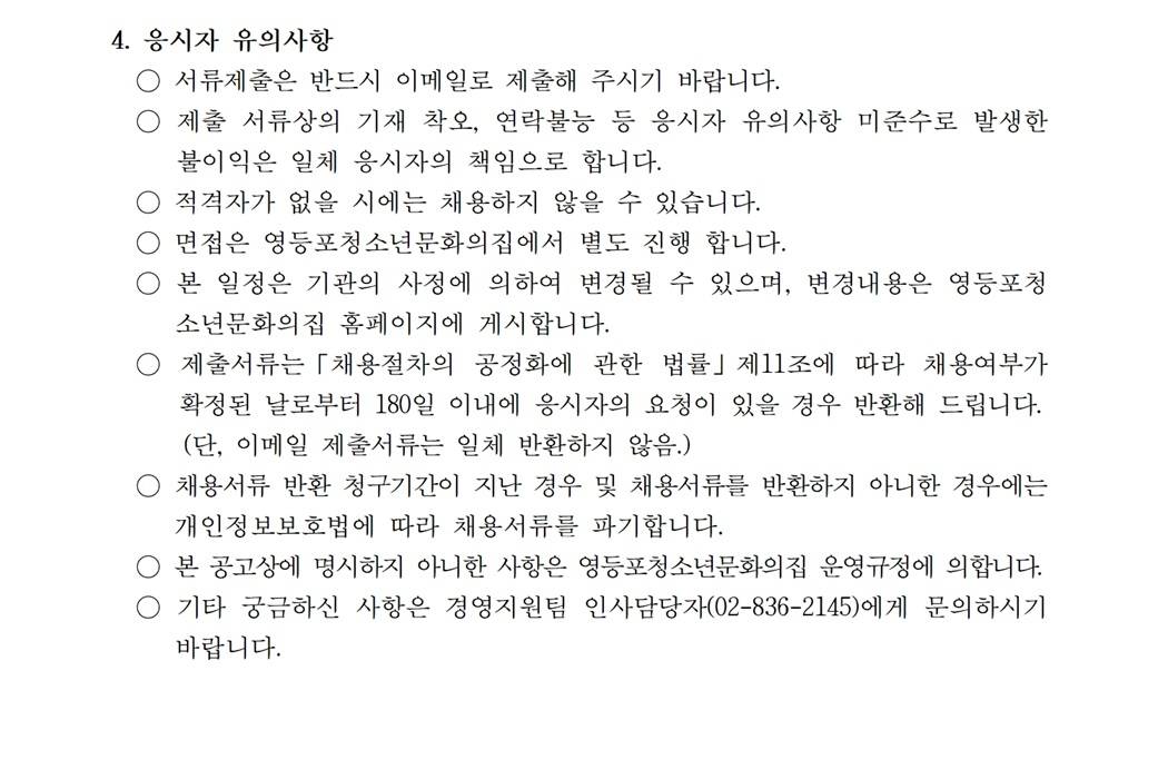[필수조건] 청소년지도사 자격증 소지자 또는 자격취득예정자 [우대조건] 관련경력 보유자 또는 시설근무 경험자