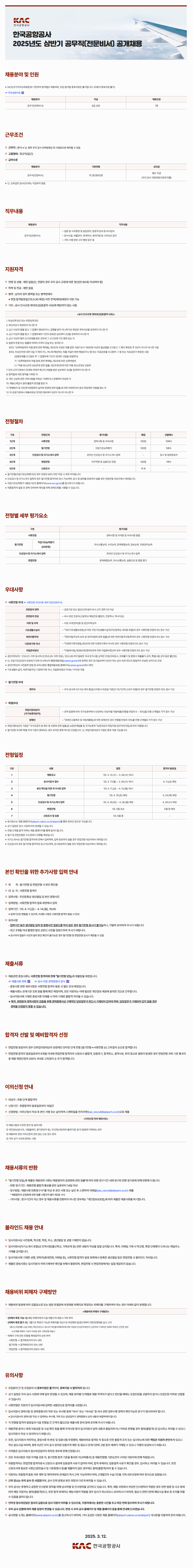 [한국공항공사] 2025년도 상반기 신입직원 채용공고 (~03/26)