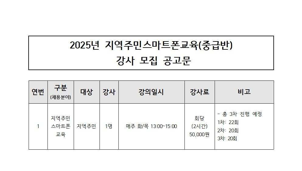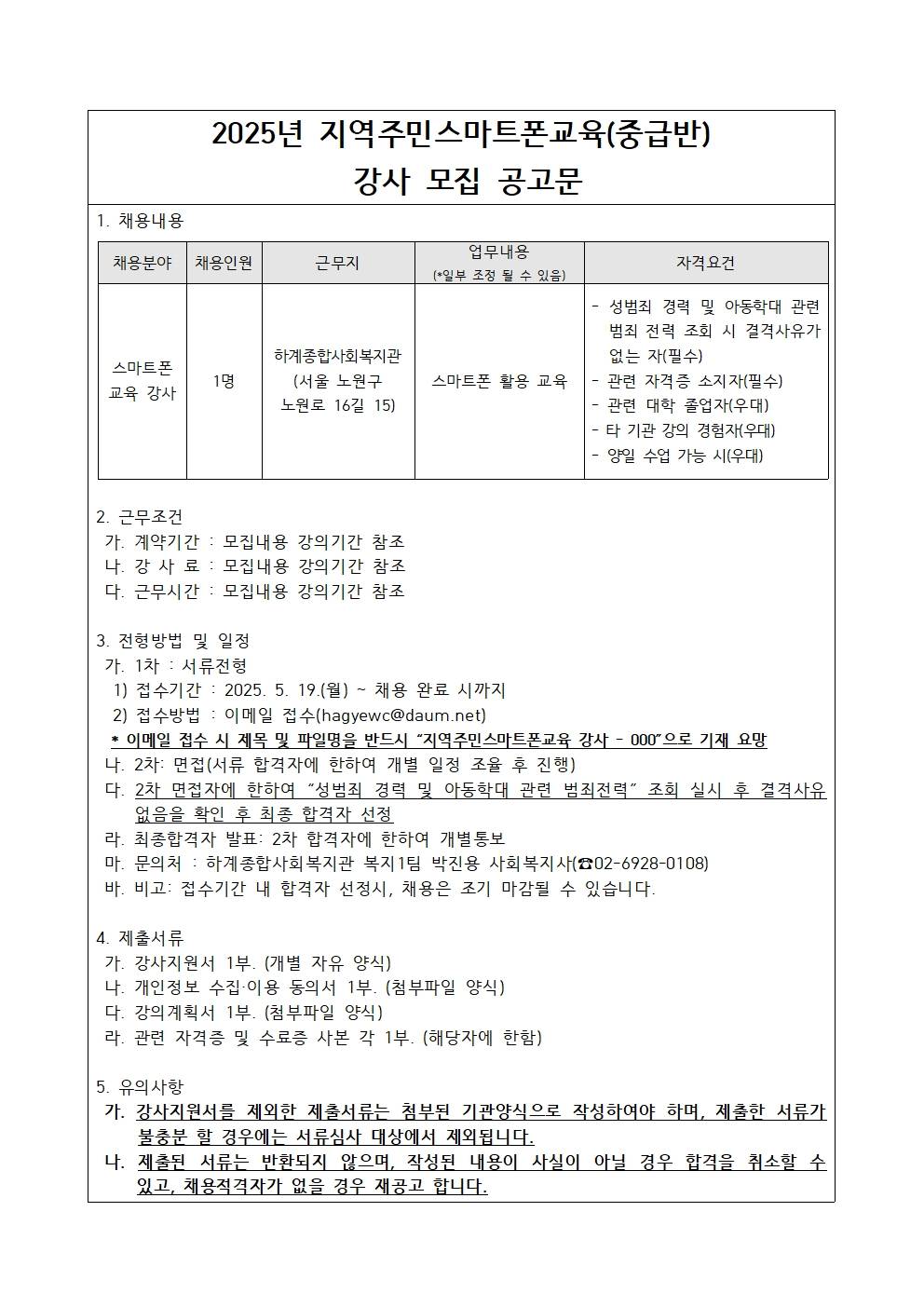 http://하계종합사회복지관에서는 스마트폰교육을 진행해주실 강사를 다음과 같이 모집합니다.