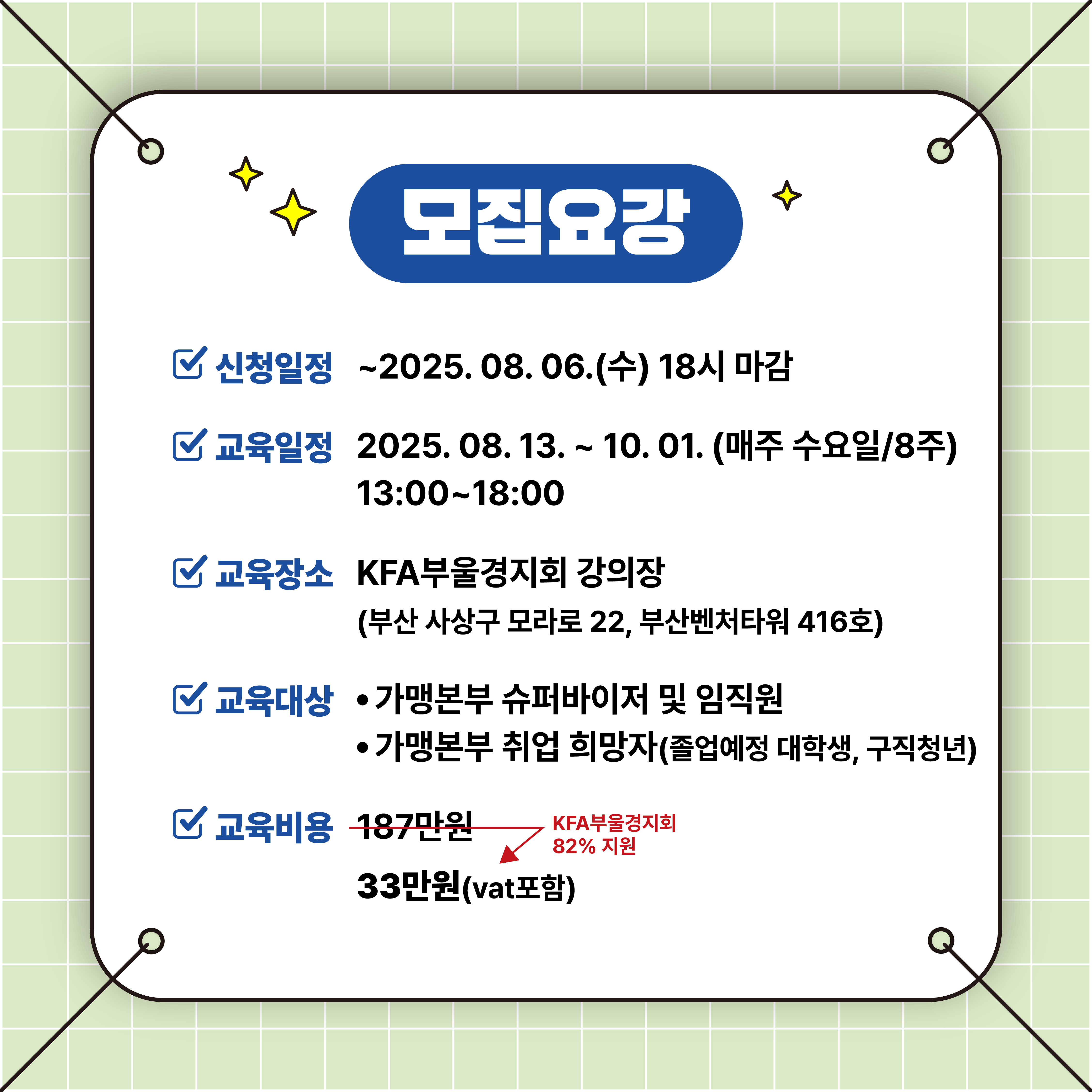 <부산 프랜차이즈 슈퍼바이저> 3기 교육생을 모집합니다!