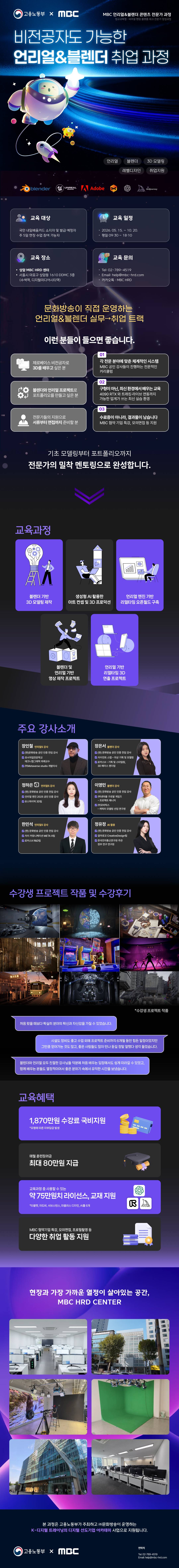 비전공자도 가능한 MBC 언리얼&블렌더 전문가 과정 교육생 모집!